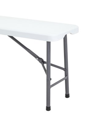 В числе преимуществ модели – компактная и удобная конструкция. В сложенном виде скамейка занимает минимум места, благодаря чему можно без проблем перевезти несколько штук даже на легковом транспорте. Для каркаса используется стальная труба особой прочности, а сиденье выполнено из 100% не переработанного полиэтилена HDPE (полиэтилен высокой плотности). Считается одним из более безопасных видов пластика. HDPE пластик выдерживает высокие нагрузки, не трескается при ударной нагрузке, эластичен в диапазоне температур от –70 до +100 °С.