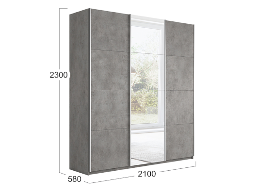 Трехдверный шкаф-купе с 1 зеркалом Траст 2100 (Трия)