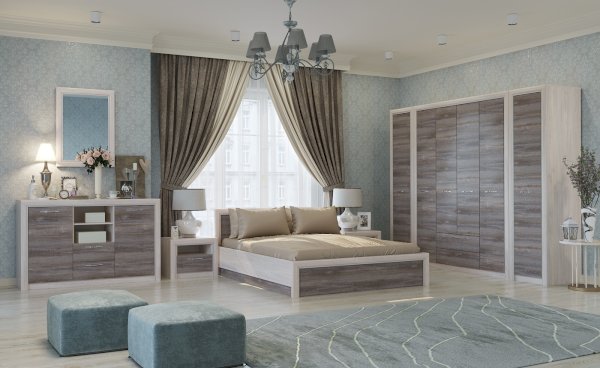 Модульная спальня Октава Ясень Анкор/Дуб Клабхаус серый (Памир)