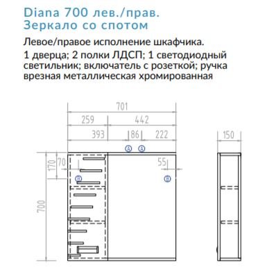 Зеркало Diana 700 правое со спотом