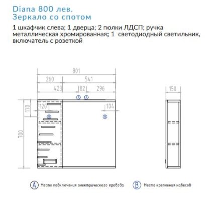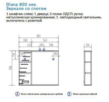 Зеркало Diana 800 левое со спотом