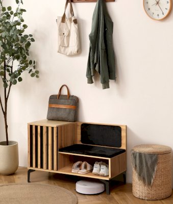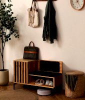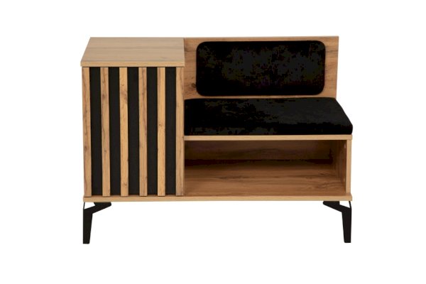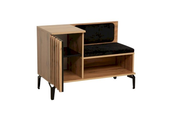 Тумба под обувь коллекции Либерти ­ это не только стильный предмет интерьера, она удобна и функциональна. У тумбы есть место для сидения, а также закрытое и открытое отделение для хранения обуви и обувных аксессуаров. У тумбы высокие изящные металлические опоры высотой 150 мм, что облегчает процесс уборки. Контрастный декор на фасаде выполнен в едином стиле с другими элементами коллекции Либерти. Тумбу можно использовать как самостоятельный элемент, так и вместе с другими модулями, создавая единую композицию.