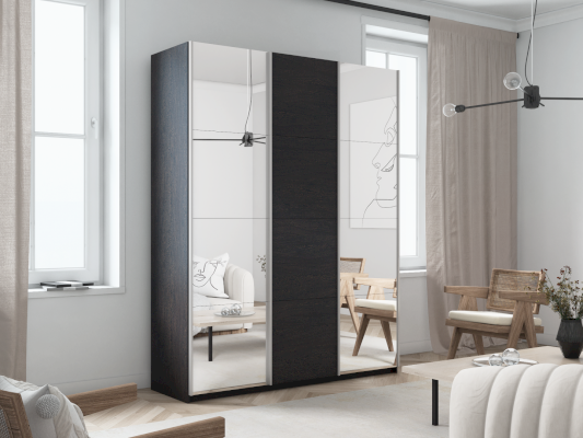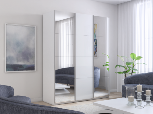 Серия «Прайм» отличается доступностью и функциональностью Навесные двери и лаконичная отделка фасадов создают прогрессивный дизайн. Подойдет тем, кто любит компактную и изящную мебель. Алюминиевые ручки и верхний ходовой профиль обеспечивают легкость и прочность конструкции. Многолетняя безупречная работа благодаря высококачественной немецкой фурнитуре Hettich. Прочная ПВХ-кромка толщиной до 1 мм защищает края от сколов и повреждений. Плавный ход дверей обеспечивает надежная система Hettich Top Line M. Дополнительно можно установить доводчики. Снаружи нет заглушек и винтов благодаря стяжечной системе крепления полок на флипперах, а корпус усилен эксцентриковыми стяжками. Навесные двери скрывают раздвижной механизм от глаз. Они надежно удерживаются в направляющих и не соскакивают. Каждая дверь поделена на 4 секции Секции расставляются в произвольном порядке, создавая новый дизайн фасада.