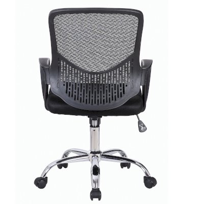 Спинка кресла выполнена из прочного сетчатого акрила с оригинальным "узором". Материал обладает высокой воздухопроницаемостью, легко чистится, способен подстраиваться под физиологические изгибы спины, при этом сохраняет форму и не растягивается. Залогом комфортного использования кресла также является эргономичная форма надёжного пластикового каркаса.