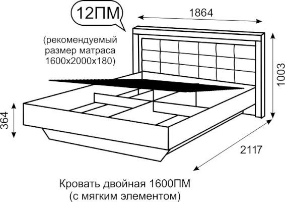 Кровать двойная 1600 мм с подъемным механизмом №12