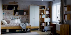 Кровать выполнена как подростковая кровать-тахта с большим выкатным ящиком на роликах. Изголовье и изножье со скругленными углами облицованы ударопрочной кромкой ПВХ 2 мм, что, безусловно, немаловажно для детей и родителей, выбирающих мебель. Обратите внимание, что изножье совсем не высокое и не будет мешать садиться на кровать даже с этой стороны, поэтому кровать можно ставить не только у стены.