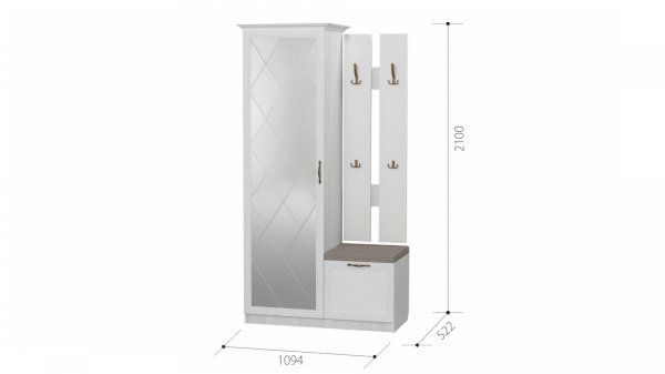 Цветовое решение: Холст белый матовый (МДФ) + Белое дерево (погонаж) + Рамух (ЛДСП).