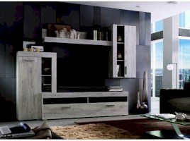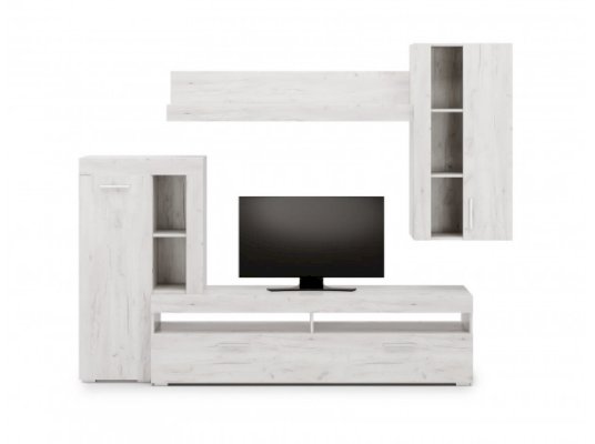 Преимущества: вместительная — множество открытых и закрытых полок для мультимедиа аппаратуры, книг, сувениров и предметов декора; стильная — минималистичный дизайн гармонирует с оригинальным цветовым исполнением; функциональное наполнение — включает ТВ-тумбу, большую навесную полку и два небольших, но функциональных шкафа.