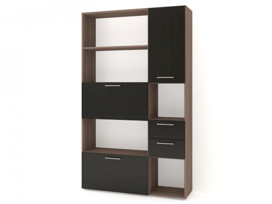 Данное изображение представлено в следующих цветах ЛДСП: корпус - Ясень Шимо тёмный, фасады - Венге Цаво.