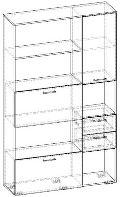 • Задняя стенка (только в ячейках с ящиками и фасадами) - ЛДСП 16 мм.