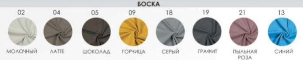 Обивка: Ткань (Велюр Боска), Ткань (Велюр Velutto), Ткань (Велюр Nova), Ткань (Велюр Grand), Кожзам