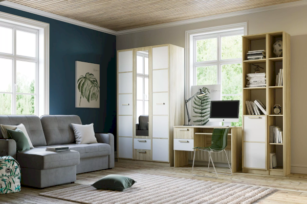 Шкаф комбинированный «Фанк» предназначен для тех, кто любит выдержанный стиль. Идеально для организации подростковой комнаты. А универсальный дизайн и цветовое решение подойдет как для мальчика, так и для девочки. Данный шкаф имеет компактные размеры, но, при этом многофункционален. Внутри модуля предусмотрены овальная штанга для одежды на вешалках, в том числе для размещения длинных вещей. Вместительная часть с пятью полками, позволит рассортировать и разместить большое количество вещей. Два выдвижных ящика внизу идеальны для хранения мелкой одежды. Классические глухие фасады надежно защитят содержимое шкафа от влаги и пыли.