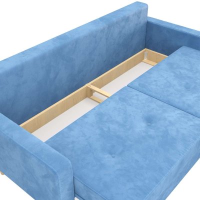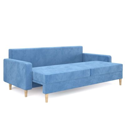 Современный прямой диван из популярной на сегодня серии мебели в "скандинавском стиле". Отличительной особенностью данной модели являются ножки из массива дерева. Что придает дивану легкости и утонченности. Бельевой ящик выполнен из ЛДСП с кромкой. Механизм трансформации "Пантограф" позволяет без особых усилий разложить диван в полноценную кровать с удобным и ровным спальным местом. В основе спального места находится качественный поролон, придающий поверхности упругость и долговечность. В комплекте идут стильные подушки.