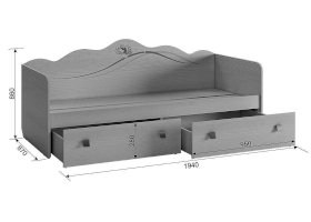 Стильная и модная софа детской «Фэнтези» - обрадует каждого ребенка. Удобное спальное место и 2-а больших выдвижных ящика для хранения постельного белья и игрушек. Необычный принтерный рисунок на фасадах выдержан в общем стилистическом решении. Рисунок устойчив к истиранию и ультрафиолету.