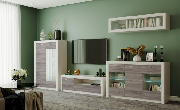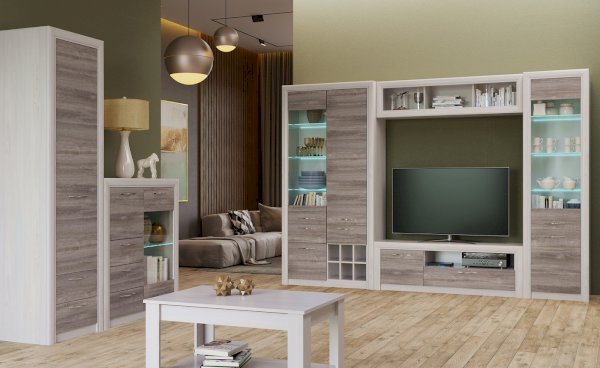 Модульная гостиная Октава Ясень Анкор/Дуб Клабхаус серый (Памир)