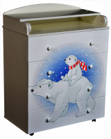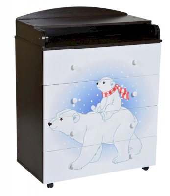Венге/слоновая кость Пеленальный комод 800/4 Lilu 1 отличается привлекательным дизайном с использованием тематических детских принтов. В конструкции изделия предусмотрены 4 маленьких передвижных колеса, несколько вместительных ящичков на шариковых направляющих и откидывающаяся пеленальная столешница. Детский пеленальный комод, декорированный красочным рисунком, вмещает в себя постельные принадлежности, средства гигиены, распашонки, подгузники, игрушки, ползунки и другие личные вещи ребенка. Гладкая столешница идеально подходит для пеленания ребенка, а колесики позволяют быстро перемещать комод.